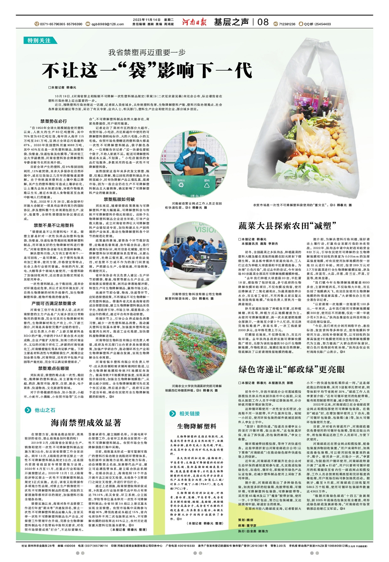 一次性可降解塑料袋、地膜、快遞外包裝、可降解餐盒……如今,該企業(yè)利用玉米、甘蔗渣、咖啡渣等農(nóng)作物制成的可降解塑料制品,暢銷30多個(gè)國(guó)家和地區(qū)。在國(guó)內(nèi),中國(guó)郵政、京東、順豐、丹尼斯、大潤(rùn)發(fā)、美團(tuán)、唯品會(huì)等該企業(yè)重要合作伙伴使用的塑料袋都是“??h制造”。